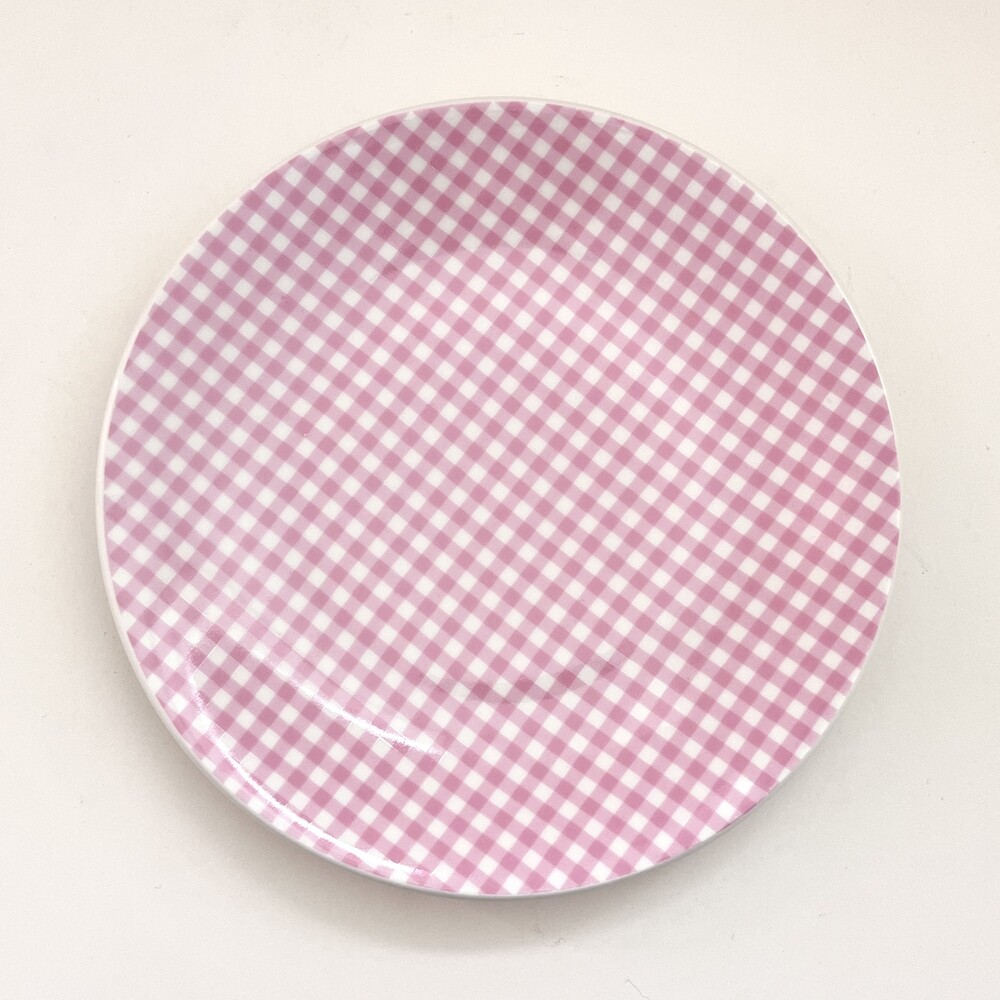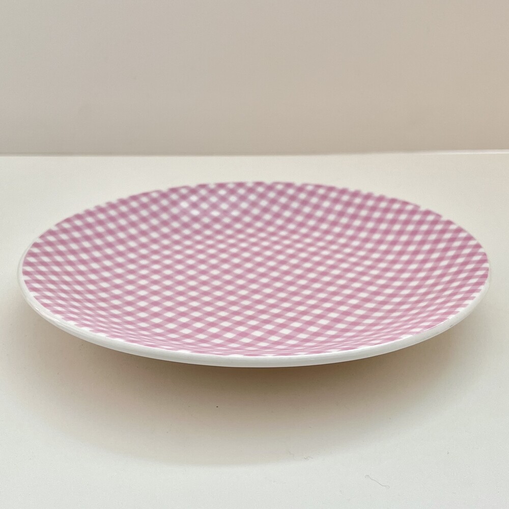 핑크 체크 접시