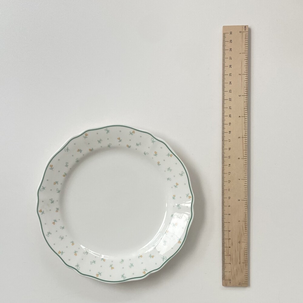 플라워 패턴 그린 라인 접시